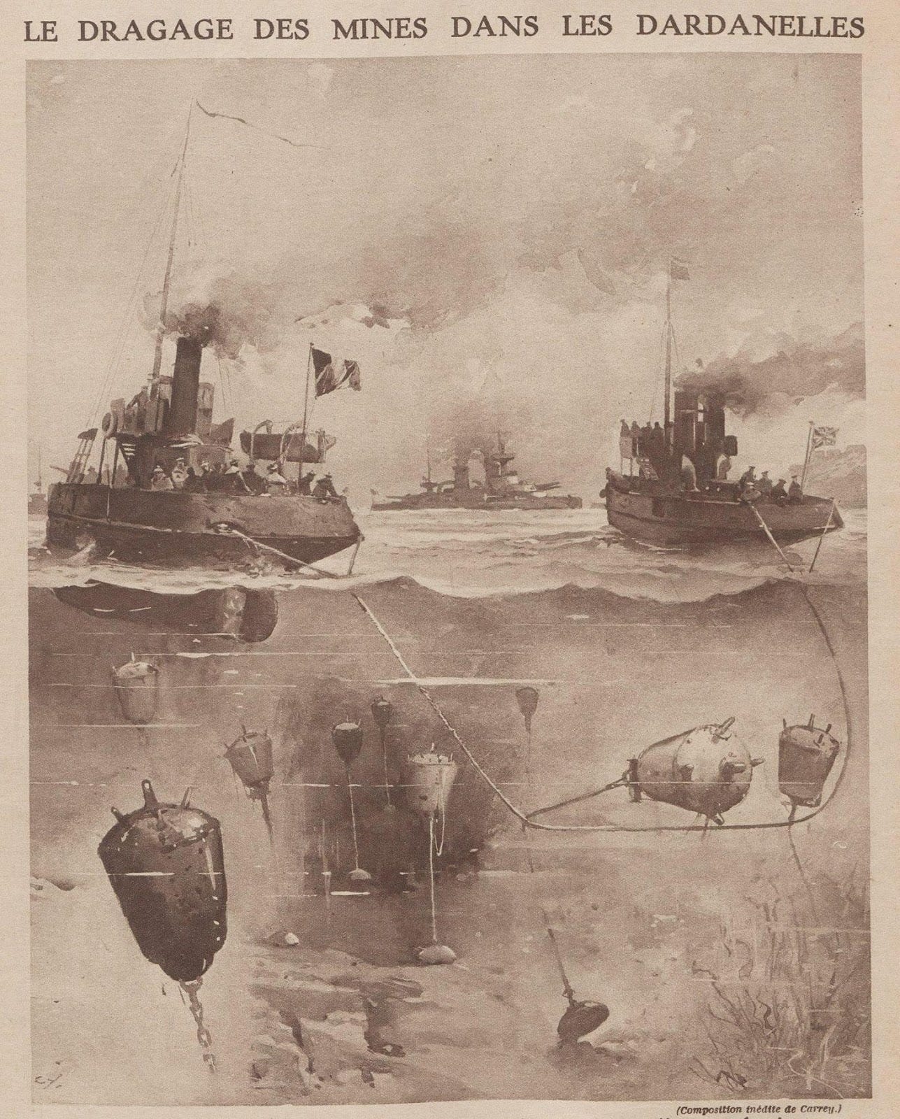 The plan was simple with one battleship moving up each side of the Straits firing on the defences as far as Kephez Point and would have howitzers on deck to provide fire against field guns. In front of the battleships min-sweepers would start their sweeping so that the way would be set for the future operations against the middle forts.